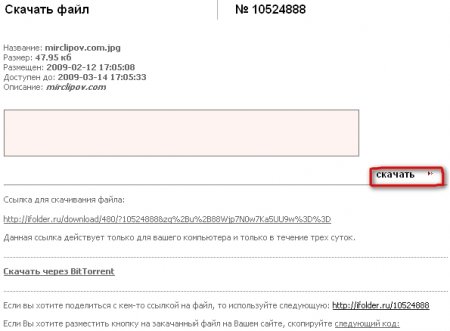Как качать с iFolder ? 3 августа 2009 104 435 1. Переходим на сайт iFolder. 2. Вводим цифры в соответствующее поле. 3. Нажимаем кнопку "Далее". 4. Нажимаем "Скачать" и начинается закачка файла.